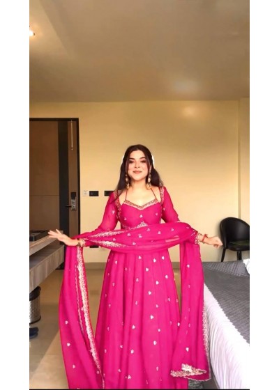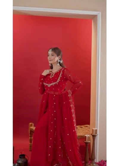 AC 7085 KARWA CHAUTH SPECIAL DESIGNER EMBRODIERY SEQUENCE WORK GOWN PLAZZO WITH DUPATTA SET