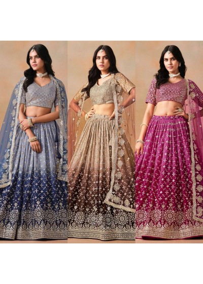 BRIDAL WEAR HEAVY FUAX GEORGETTE EMBROIDERED SEQUENCE WORK LEHENGAS CHOLI WITH DUPATTA