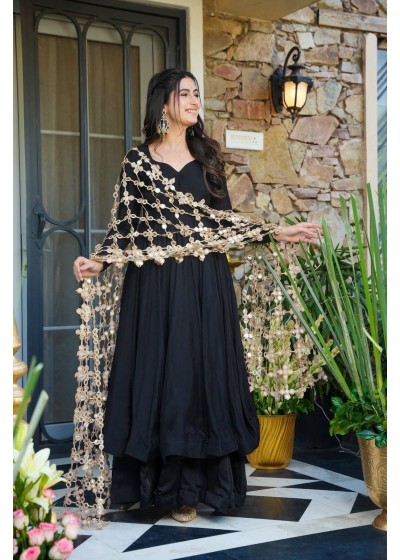 SM 114 BLACK COLOUR PARTY GOWN SET