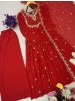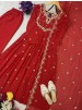 AC 7085 KARWA CHAUTH SPECIAL DESIGNER EMBRODIERY SEQUENCE WORK GOWN PLAZZO WITH DUPATTA SET