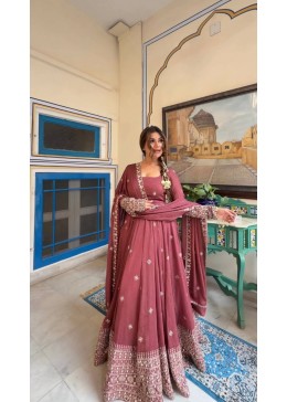 Traditional Wine Anarkali Set Full Flare Gown sathe Heavy Work Sleeves ane Dupatta